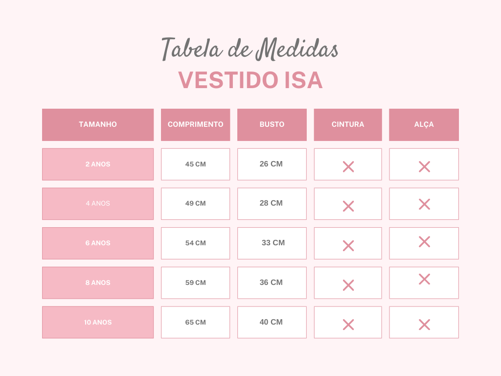 🌸 Disponível nos tamanhos 2 ao 10 anos.